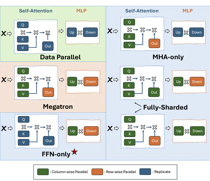 Overview of TAPAS. TAPAS takes a neural network as input and outputs the best tensor parallel schedule.Tensor parallelism is an essential technique for distributed training of large neural networks. However, automatically determining an optimal tensor parallel strategy is challenging due to the gigantic search space, which grows exponentially with model size and tensor dimension. This prohibits the adoption of auto-parallel systems on larger models. We observe that neural networks usually contain repeated substructures, and build an automatic parallelism framework named TAPAS that eliminates redundant search efforts. TAPAS employs a divide-and-conquer approach that efficiently folds the search space by identifying those unique substructures. As a result, it runs at sub-linear complexity concerning the model size, making it a scalable solution for training large-scale networks. Our evaluations demonstrate that TAPAS outperforms the state-of-the-art automatic parallelism frameworks by up to $160 imes$ in search speed on a wide range of models, and the performance of derived strategies is competitive or even better compared with the expert-engineered Megatron-LM library..